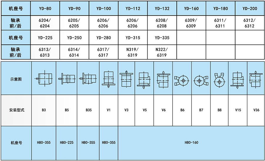 YDT系列電機(jī)安裝尺寸與YE2系列電機(jī)相同,防護(hù)等級為IP54和IP55,有兩速、三速兩種類型,具有高效節(jié)能、噪音低、振動小、絕緣性能好、運(yùn)行可靠、維修方便等優(yōu)點(diǎn)。